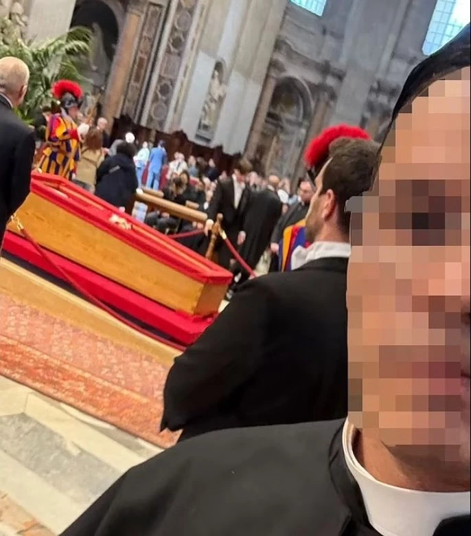 Около 50 000 вярващи отдадоха почит на покойния папа още в първия ден, но някои предизвикаха гняв, след като публикуваха зловещи селфита, на които се вижда тялото на Франциск, положено в одежди в дървен ковчег на заден план, съобщава "Дейли Мейл".