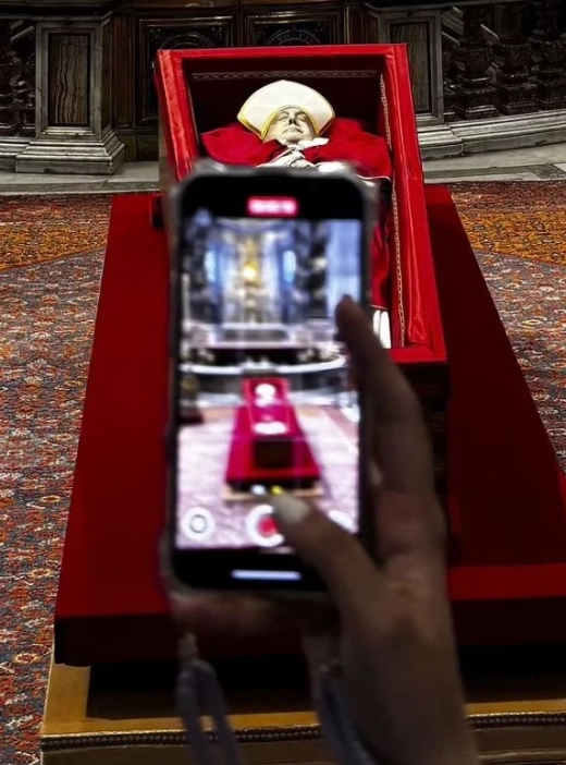 Официални снимки от първия ден от погребението показват тълпи от хора, обграждащи простия ковчег, държащи телефоните си във въздуха над главите си. Море от екрани се виждаше да се носи около тялото на папата, а някои дори изпънаха селфи стикове в опит да заснемат най-добрия кадър.