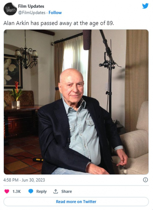 На 89-годишна възраст почина една от легендите на Холивуд - актьорът Алън Аркин. Новината бе съобщена от синовете му Адам, Матю и Антъни, посочва "Дейли мейл".