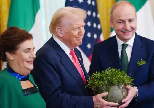 Президентът на САЩ Доналд Тръмп посрещна ирландския премиер Михол Мартин в сряда за ежегодното празнуване на Деня на Свети Патрик в Белия дом, където добави Ирландия към списъка с държави, за които казва, че се възползват от Съединените щати, съобщава Асошиейтед прес. Мартин контрира, като отбеляза приноса на Ирландия към американската икономика.
