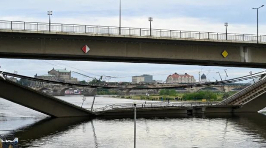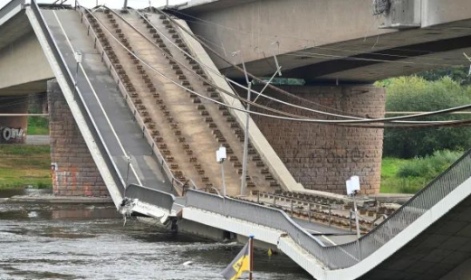 В Дрезден, Източна Германия, част от мост, който минава над река Елба и е част от вътрешноградския обществен транспорт, се срути тази нощ. Срутването е засегнало южната половина на моста "Карола", който пресича улица Terrassenufer, съобщи Die Presse. Няма информация пострадали хора. Инцидентът е станал около 3 часа тази сутрин.